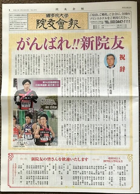 本日院友会報374号が届きました。支部会員の方々のところにはもう届いていますか?