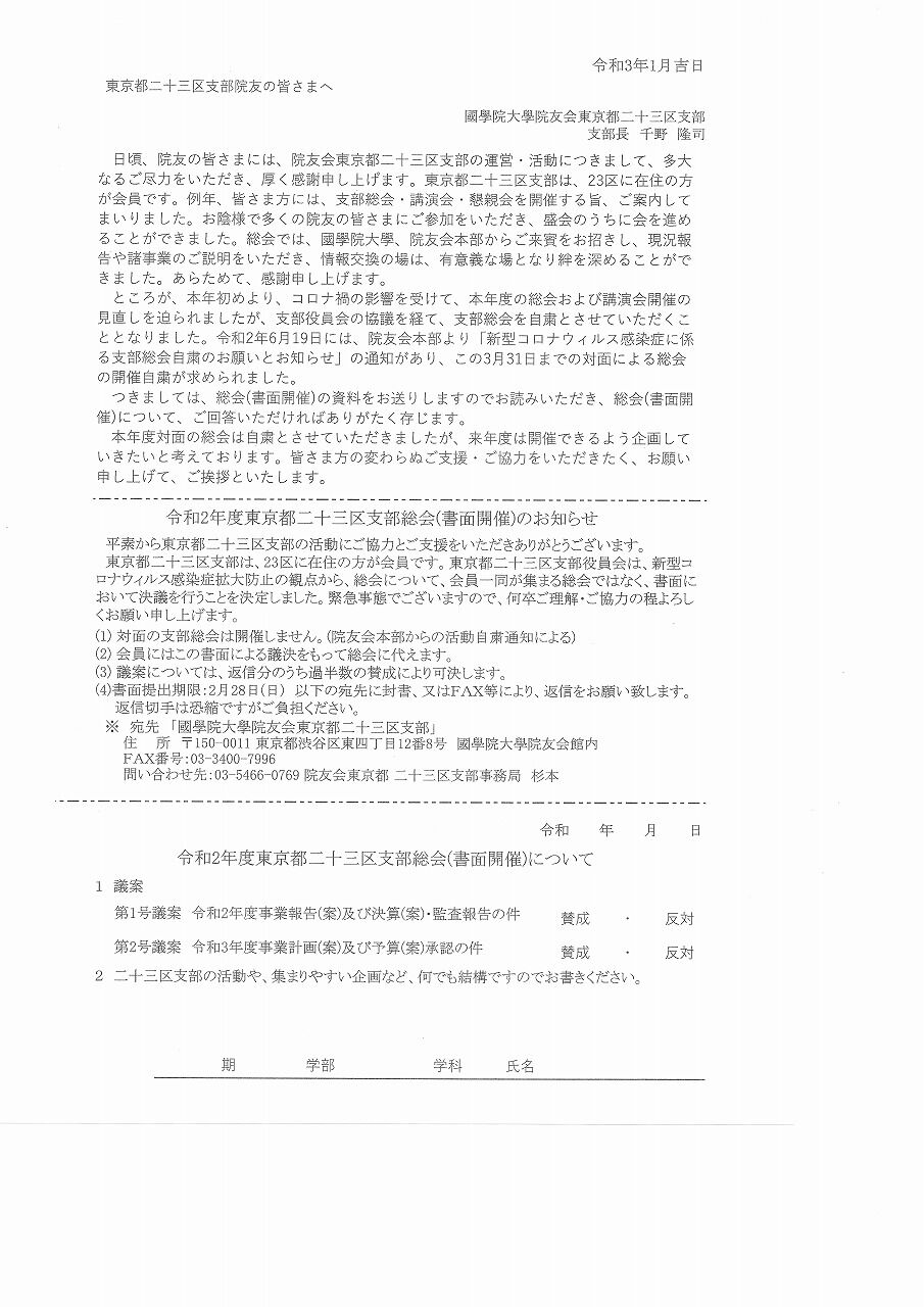 23区支部会員の方は、今年度の特別な事情を鑑み、FAXまたは郵送で返信という形での開催にご協力ください。