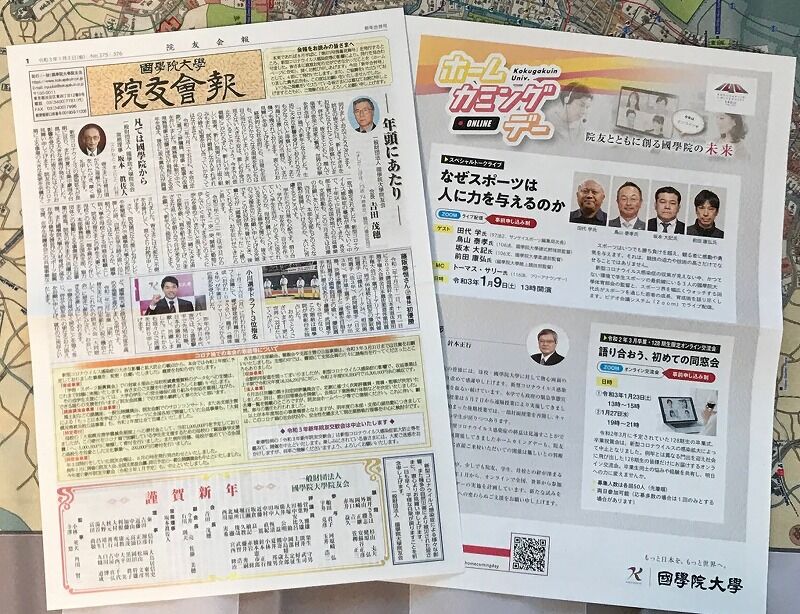 さて、院友会報(写真左側)はだいぶ記事も少なく4面のみとなっております。広告もほぼなし。やはり新型コロナ時代を反映したものということになるのでしょうか。