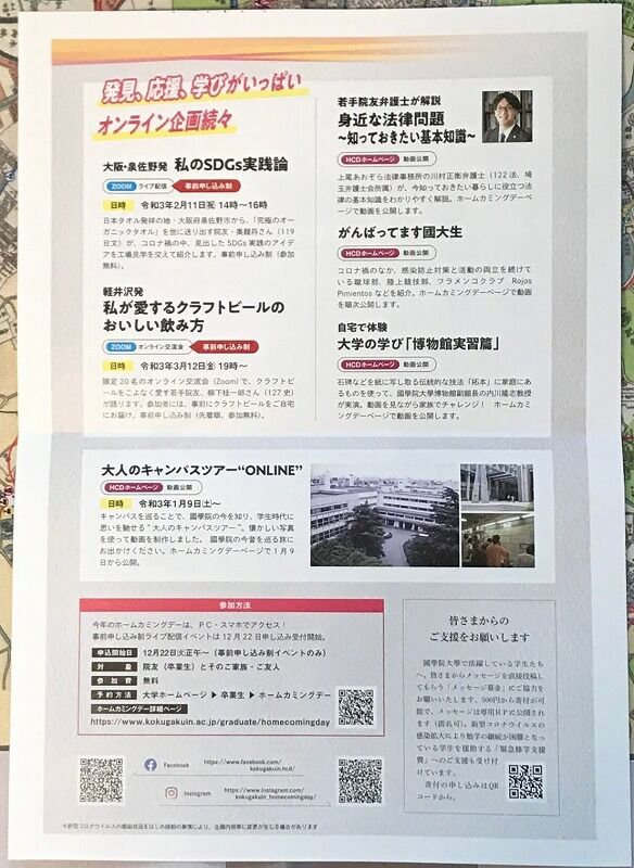 ただ、今号にはもう一つホームカミングデーONLINEというものも同封されていました。(こちらは院友会ではなく大学からのよう)