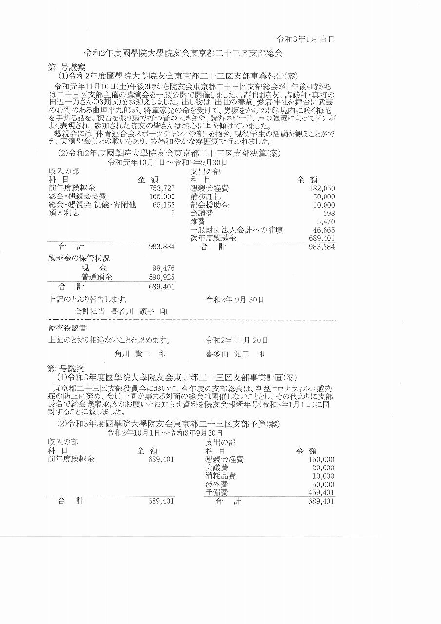 本日院友会報№375・376号(新年合併号)同封で支部会員宛の通知が我が家にも届きました。一応参考までにこちらにも載せておきます。なお、もしこれを印刷して使われる場合、元の書類はB5版です。