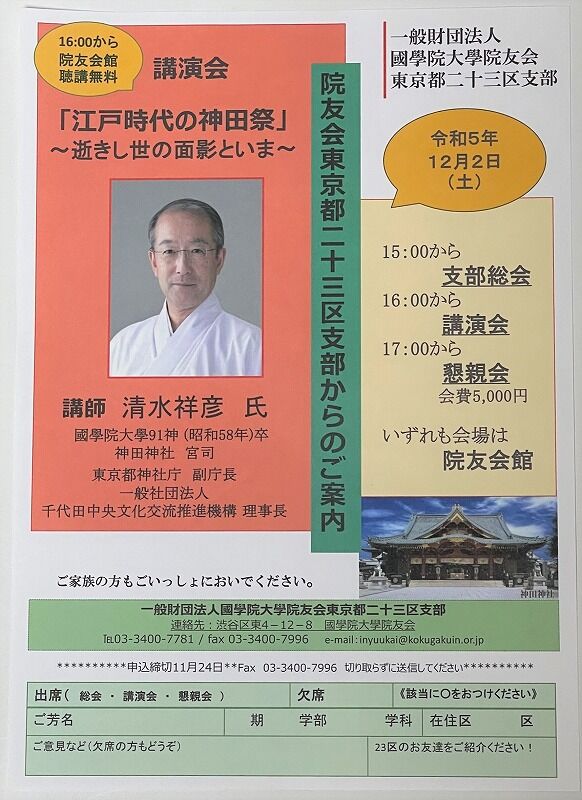 それはそれとして支部会員の皆さんは是非ふるってご参加ください。上記チラシに記入して院友会館にFAXをよろしく!チラシが手元にないという方は院友会に電話して確認してください。