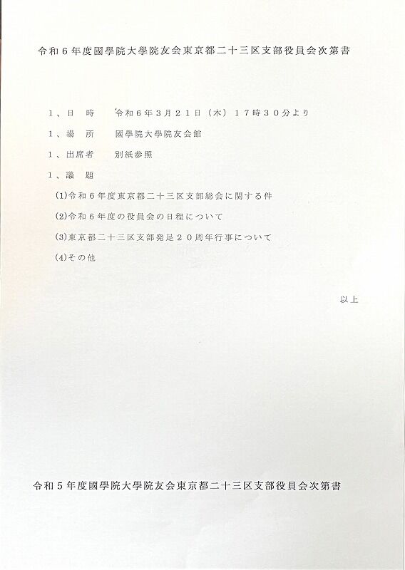 (3)は事務局腹案をもとに今後検討していくということになりました。なお、20周年記念行事は令和7年11月22日(土)開催予定ということになります。